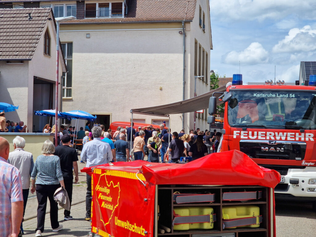 Ein Dank an alle Organisatoren, die zum Gelingen des zweiten Teils der Feierlichkeiten beigetragen haben, stellvertretend Jan Schuhmann von der Abteilung Menzingen. Bereits in Oberacker hatten die Feuerwehrmänner und -frauen, ihre Gastfreundschaft unter Beweis gestellt, federführend – für den „Zug-Mitte“ (Gochsheim, Münzesheim und Oberacker) – war Thomas Vogel. Der Firma Billerbeck gebührt ein großes Dankeschön, weil sie ihr historisches Fahrzeug zur Verfügung gestellt hatte. Kraichtals Stadtoberhaupt Tobias Borho und Feuerwehr Kommandant Mathias Bauer zeigten sich erfreut über die vielen interessierten Gäste an einem sonnigen Sonntagnachmittag.