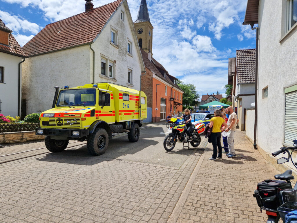Zahlreiche Fahrzeuge verschiedener Rettungsorganisationen wie der Feuerwehr Kraichtal, des ASB und der Polizei waren zur Schau gestellt und bereit zum Probesitzen. Hier konnten sich die Besucher über die Arbeit der Feuerwehr informieren. Sprungretter, Schlauchboot, Gefahrgutpumpen, Eisenbahnlore und vieles mehr zeigten die große Vielfalt der Feuerwehrarbeit. Highlight des Tages war das Mitfahren im Drehleiterkorb des Fahrzeugs der Firma Rosenbauer – weiche Knie und ein toller Blick auf Menzingen inklusive.