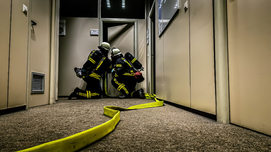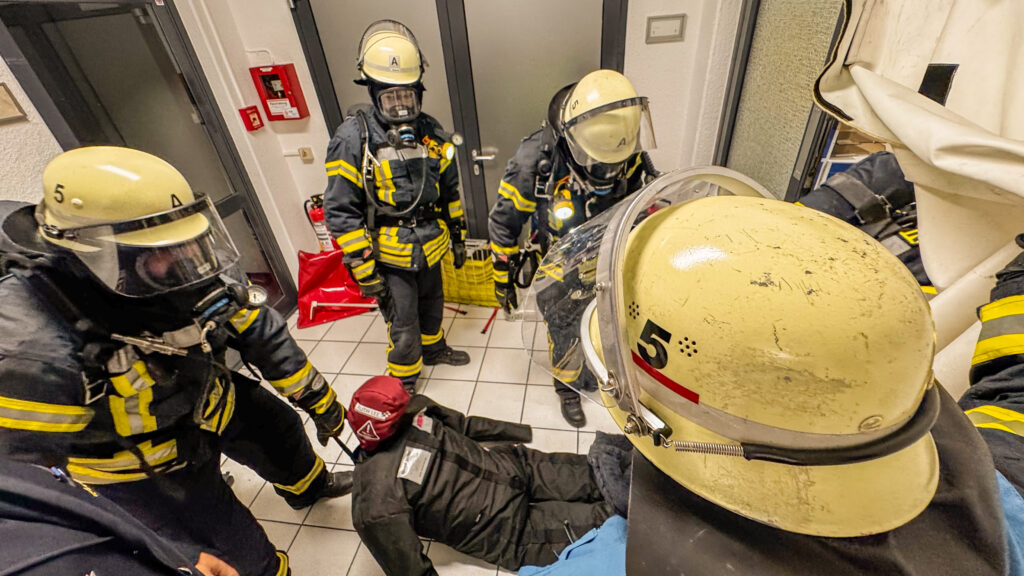 Mit viel Dank und Freude wurde am Mittwochabend die neue Übungspuppe in ihrer ersten Einsatzübung Eingeweiht. Die Abteilung Gochsheim musste diese in einem leichten Szenario aus einem brennenden Büro retten. Zwei Trupps unter Atemschutz suchten die Puppe im verrauchten Flur und in verschiedenen Büroräumen, um sie so schnell wie möglich zu retten.