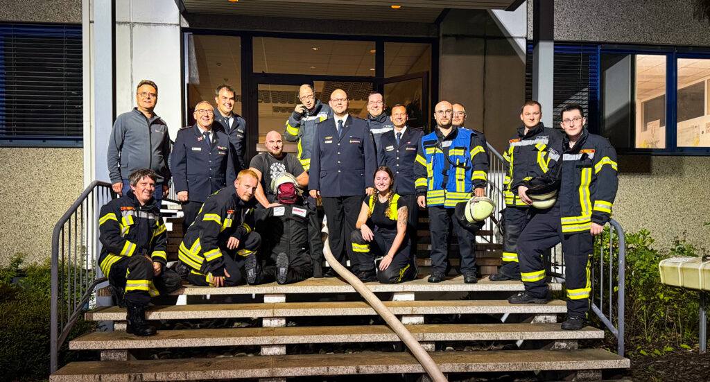 Nach der Einsatzübung wurde die Übungspuppe durch den Produktionsleiter Andreas Wetzel der Firma Polytec offiziell an die Feuerwehr Kraichtal übergeben. An der Übergabe nahmen Kommandant Matthias Bauer, stellv. Kommandant Leonard Herdle sowie weitere Abteilungskommandanten der Feuerwehr Kraichtal teil.